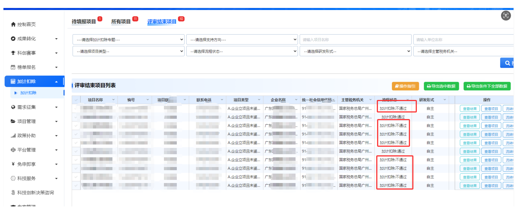 加計(jì)扣除立項(xiàng)抽查鑒定不通過(guò)的企業(yè)