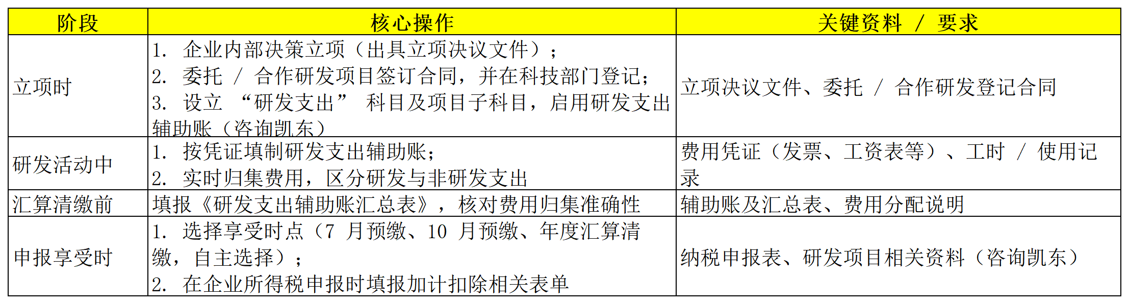要規(guī)范化享受研發(fā)費(fèi)用稅前加計(jì)扣除政策,需從適用范圍界定、費(fèi)用歸集規(guī)范、常見(jiàn)問(wèn)題把控、申報(bào)流程執(zhí)行及后續(xù)管理配合五大核心維度推進(jìn),確保全流程符合政策要求;